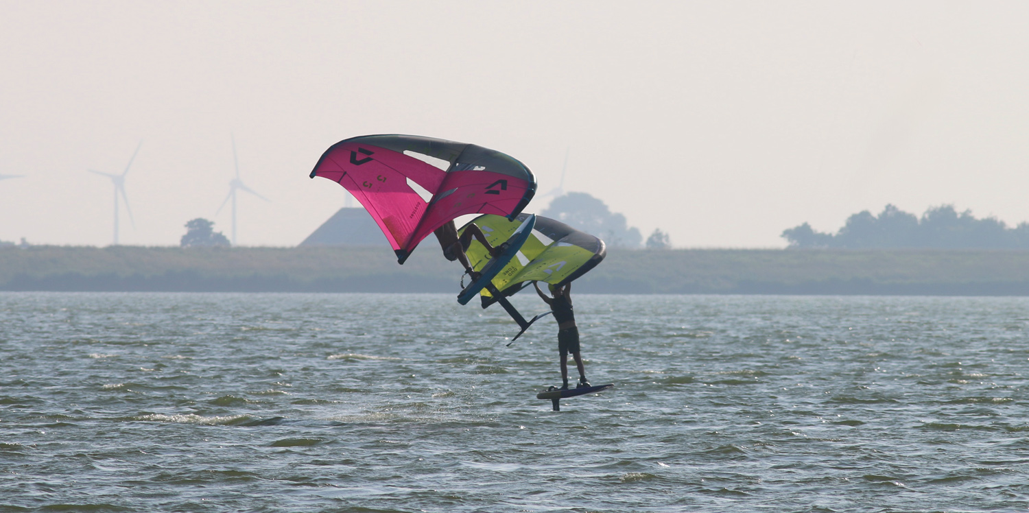 Alle watersporten gaan tegenwoordig de lucht in! Windsurfers foilen, kiters foilen, SUPpers foilen, golfsurfers foilen en ook zeilboten vliegen op de foil boven het water. En sinds een paar jaar zijn er ook foilers met een wing in hun handen. Wingfoilers! De Foil zit onder een klein Board waar je op staat.